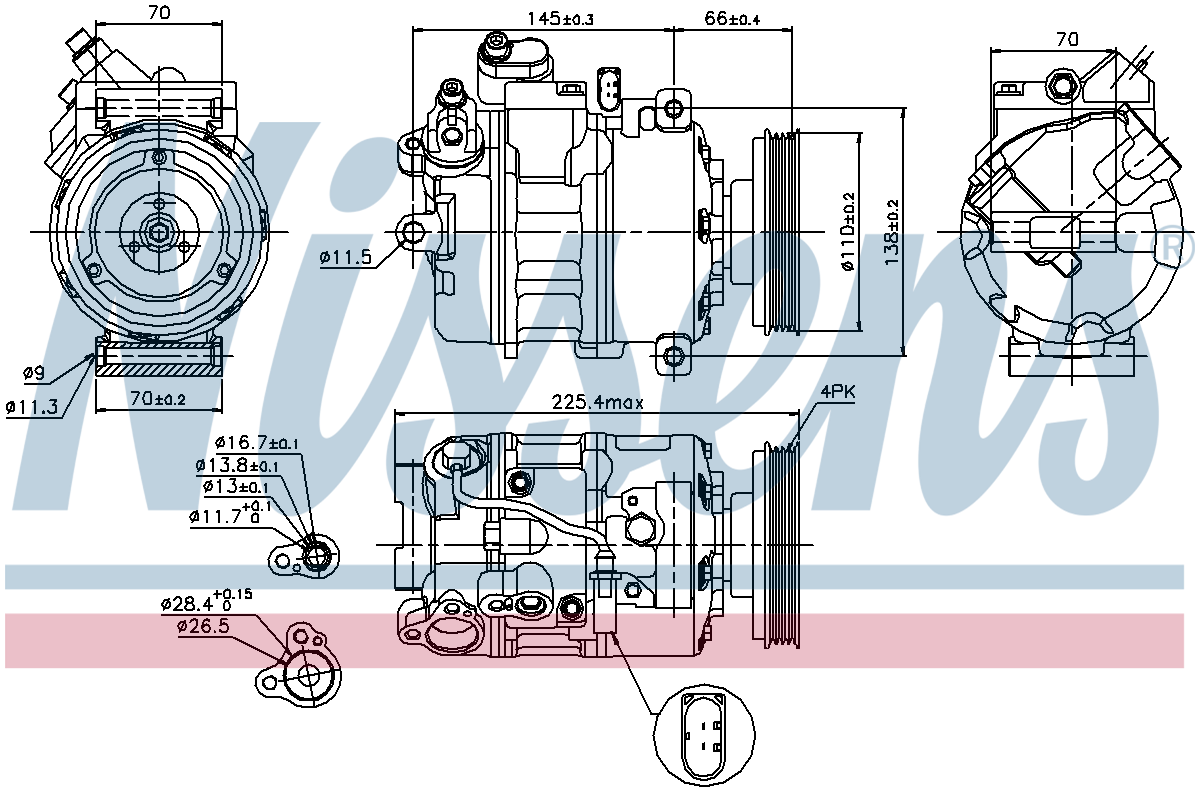 AVA: AIAK226, AVA: AIK226, DENSO: DCP02011, MAHLE: ACP167000S, MAHLE: ACP308000S, NRF: 32106, VALEO: 699380, VALEO: 813690